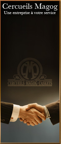 Cercueils Magog ne vend pas directement ses produits au grand public, mais les distribue plutôt via les entreprises de services funéraires locales. Votre directeur funéraire sera en mesure d’offrir les meilleurs conseils et informations. Vous pourrez reconnaître nos produits par notre logo appliqué sur chacun de nos cercueils.